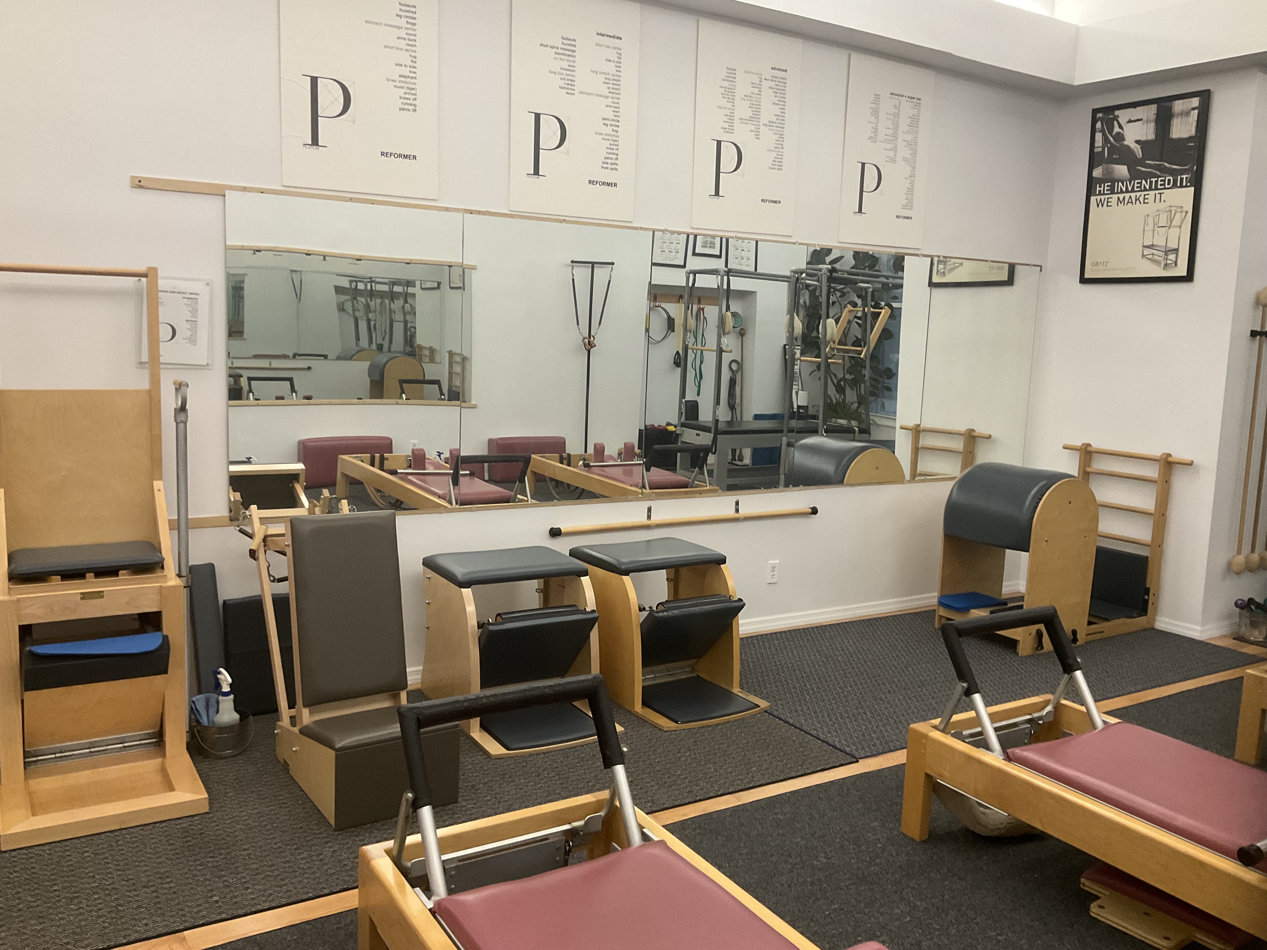 The reformers are made by Gratz, the original company that Joseph Pilates went to with his equipment designs back in the 1940's.
